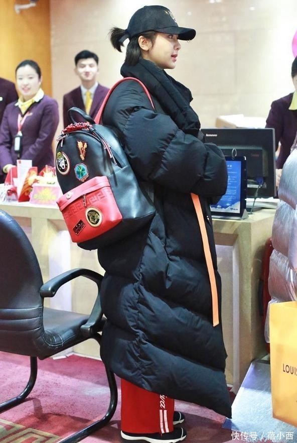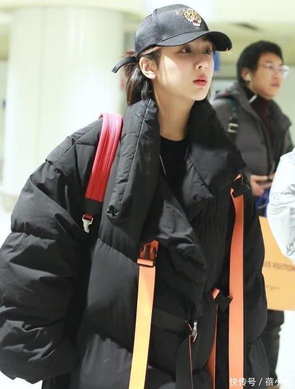 杨紫的机场街拍则把羽绒服的“潮酷感”拉满,她的黑色长款羽绒服采用oversize廓形,夸张的领口与超长衣身自带气场,橙黄色抽绳作为点缀,让沉闷的黑色多了几分活力。下身搭配红色运动裤,裤侧的白色条纹与羽绒服的抽绳形成呼应,整套穿搭在黑与红的碰撞中,具有冬日的保暖实用,又不失年轻人的潮流态度。